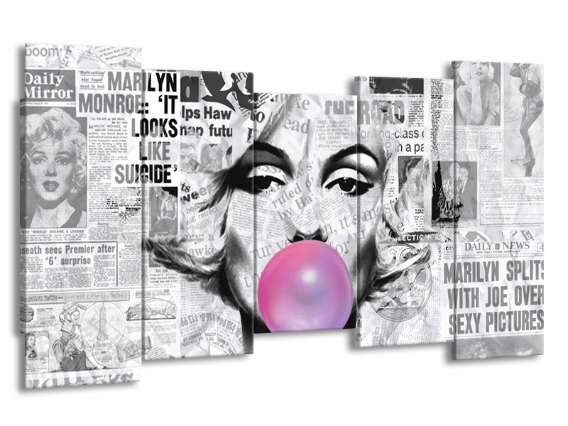 Glasschilderij Marilyn Monroe | Zwart, Grijs, Paars | 150x80cm 5Luik