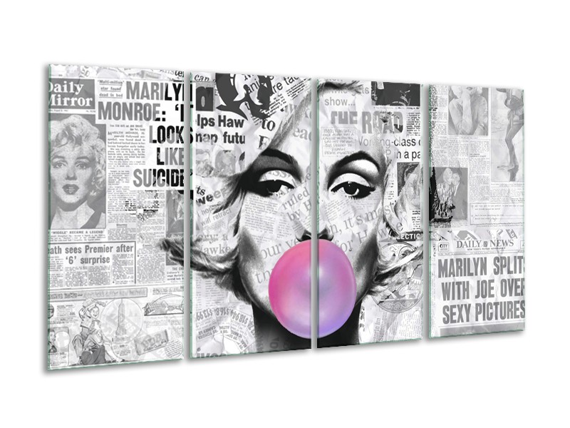 Glasschilderij Marilyn Monroe | Zwart, Grijs, Paars | 160x80cm 4Luik