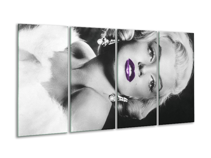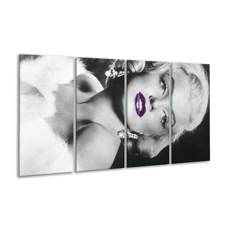 Glasschilderij Marilyn Monroe | Zwart, Grijs, Paars | 160x80cm 4Luik