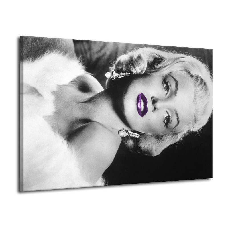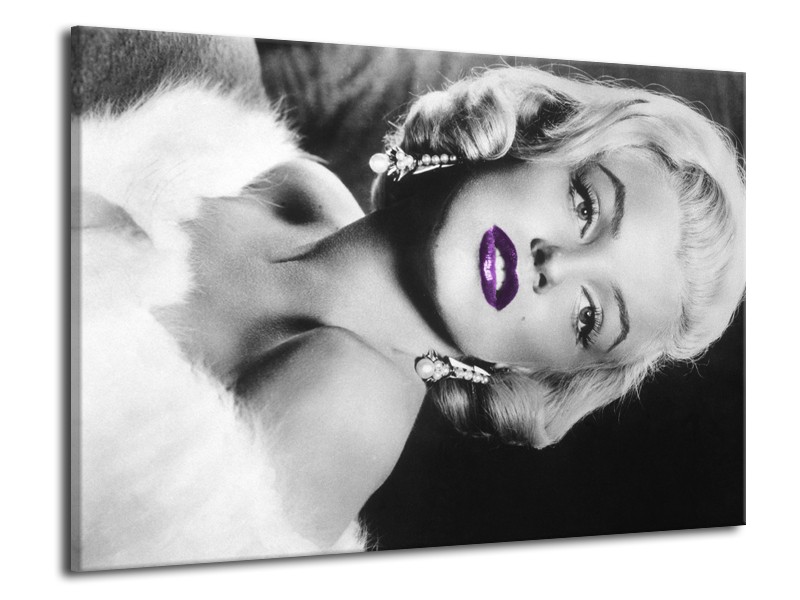Glasschilderij Marilyn Monroe | Zwart, Grijs, Paars | 70x50cm 1Luik