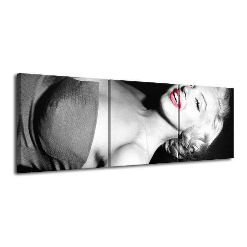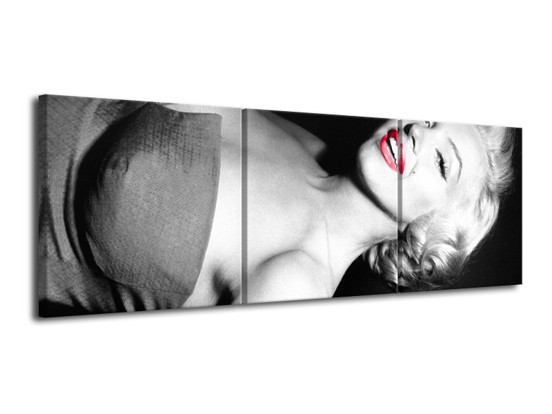 Glasschilderij Marilyn Monroe | Zwart, Grijs, Rood | 120x40cm 3Luik