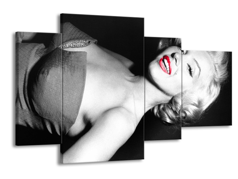 Glasschilderij Marilyn Monroe | Zwart, Grijs, Rood | 120x75cm 4Luik