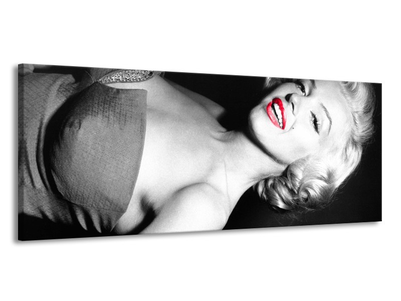 Glasschilderij Marilyn Monroe | Zwart, Grijs, Rood | 145x58cm 1Luik