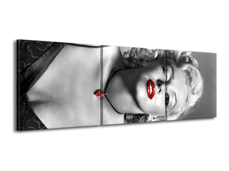 Glasschilderij Marilyn Monroe | Zwart, Grijs, Rood | 150x50cm 3Luik