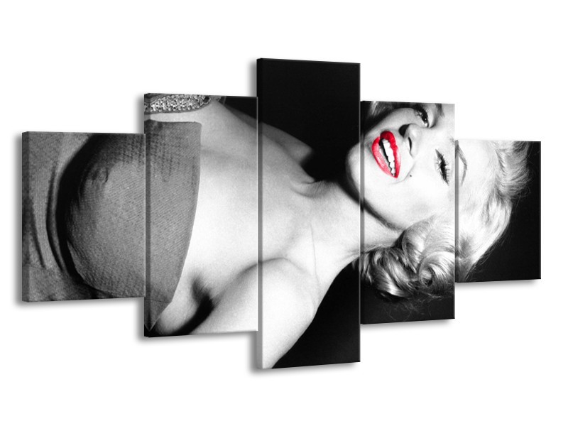 Glasschilderij Marilyn Monroe | Zwart, Grijs, Rood | 150x80cm 5Luik