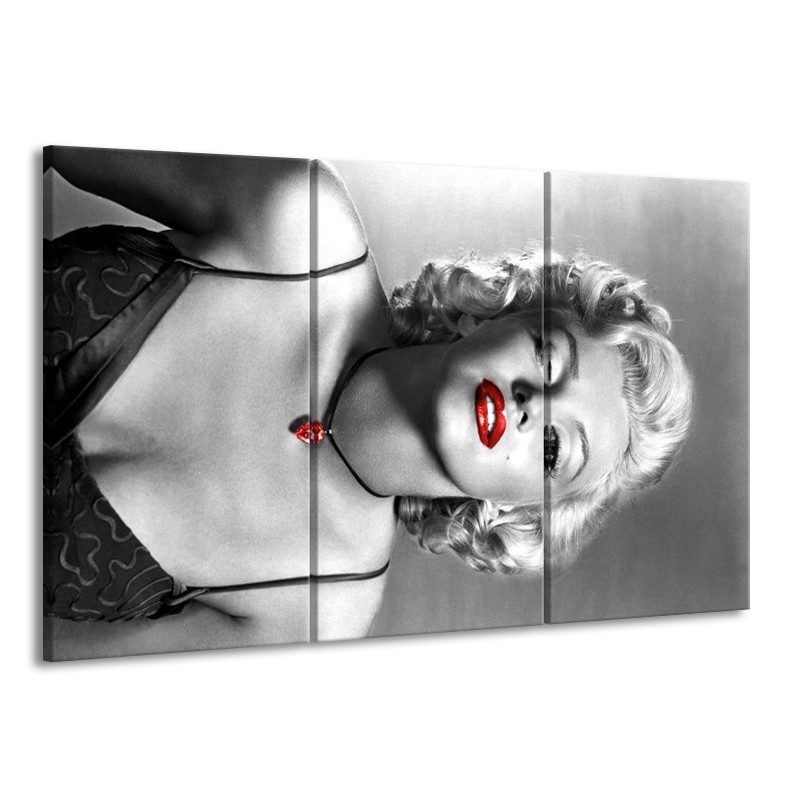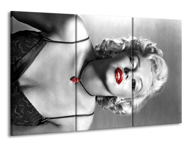 Glasschilderij Marilyn Monroe | Zwart, Grijs, Rood | 165x100cm 3Luik