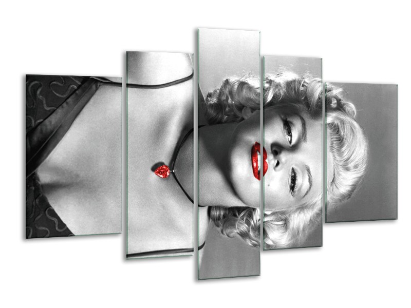 Glasschilderij Marilyn Monroe | Zwart, Grijs, Rood | 170x100cm 5Luik