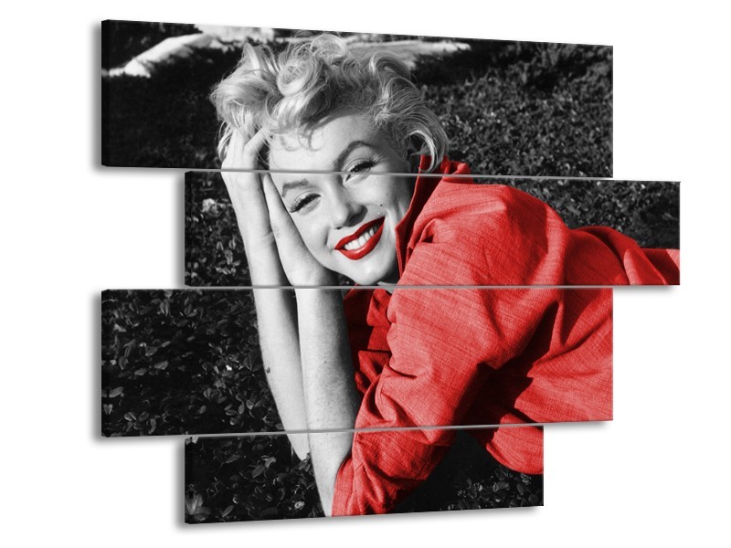 Glasschilderij Marilyn Monroe | Zwart, Rood, Grijs | 115x85cm 4Luik