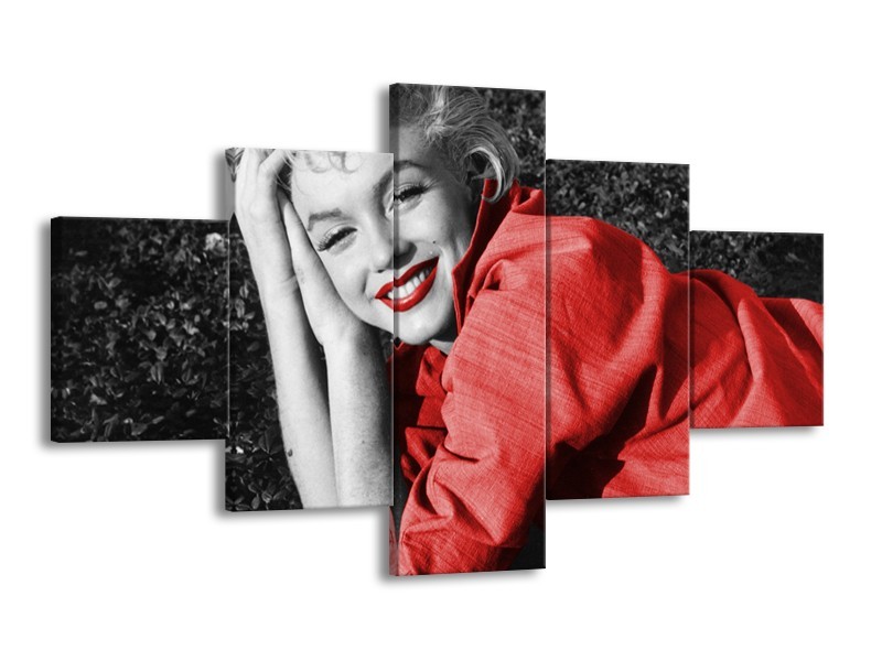 Glasschilderij Marilyn Monroe | Zwart, Rood, Grijs | 125x70cm 5Luik