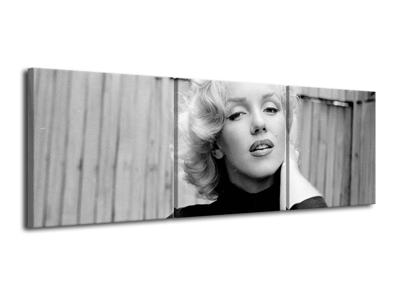 Glasschilderij Marilyn Monroe | Zwart, Wit, Grijs | 120x40cm 3Luik