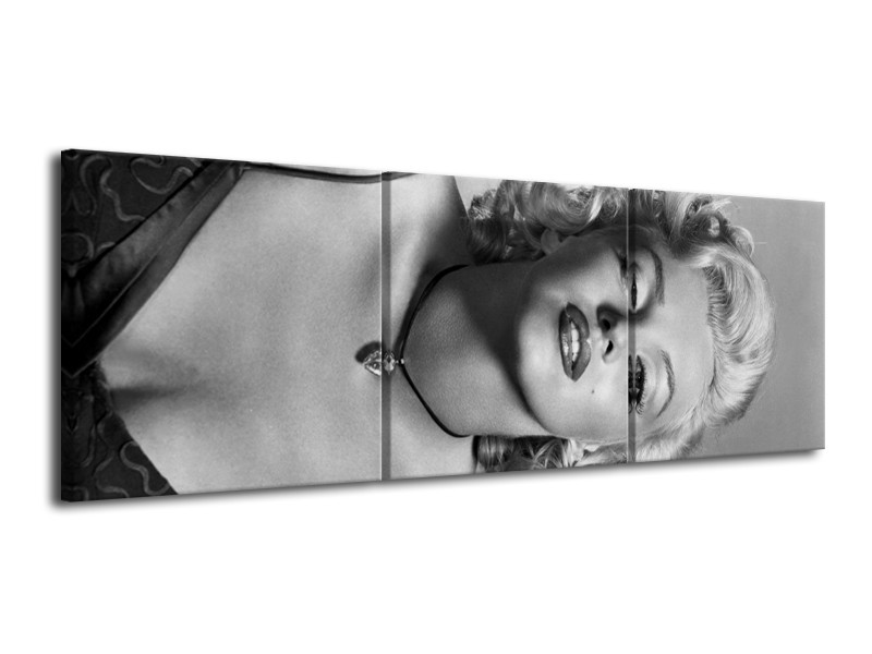 Glasschilderij Marilyn Monroe | Zwart, Wit, Grijs | 120x40cm 3Luik