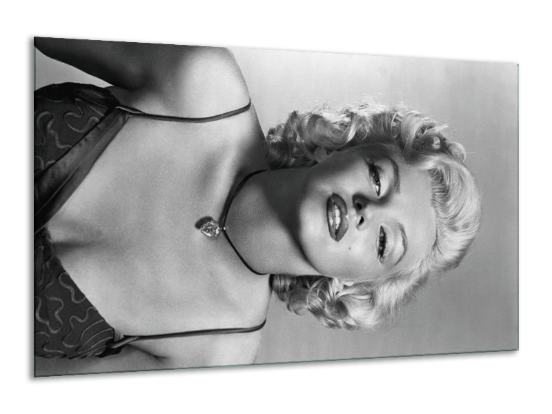 Glasschilderij Marilyn Monroe | Zwart, Wit, Grijs | 120x70cm 1Luik