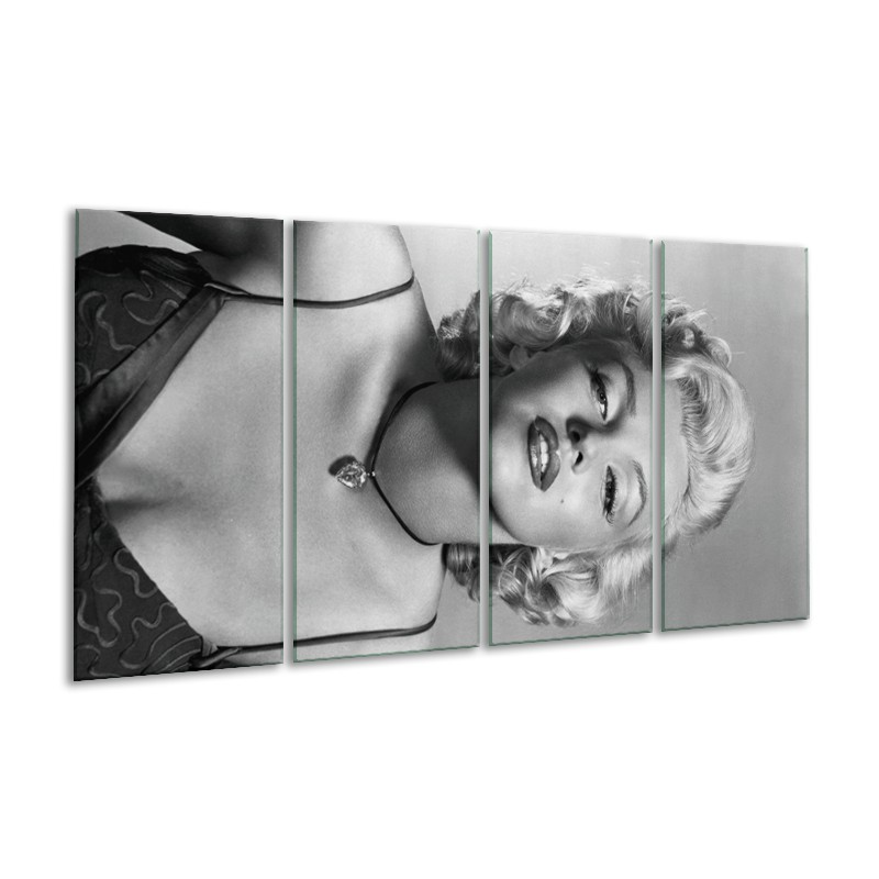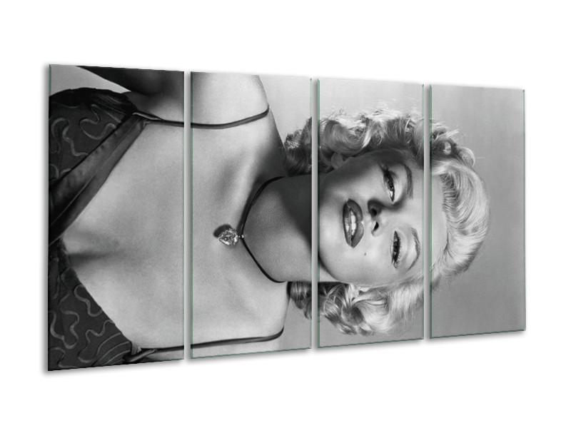 Glasschilderij Marilyn Monroe | Zwart, Wit, Grijs | 160x80cm 4Luik