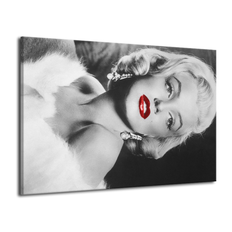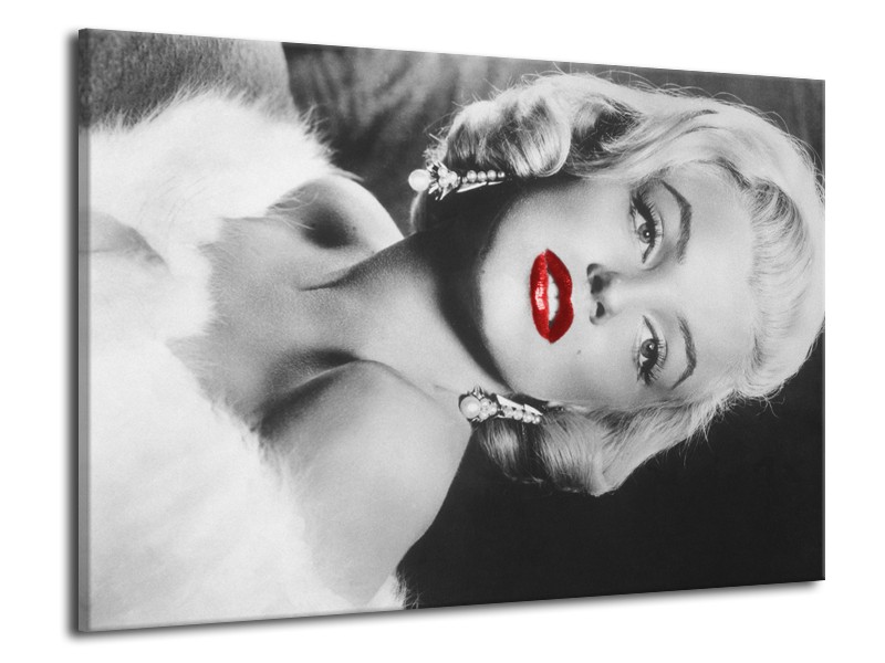 Glasschilderij Marilyn Monroe | Zwart, Wit, Rood | 70x50cm 1Luik