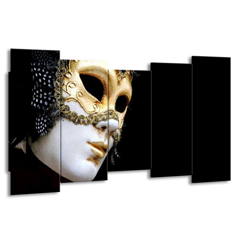 Glasschilderij Masker, Modern | Zwart, Wit, Goud | 150x80cm 5Luik