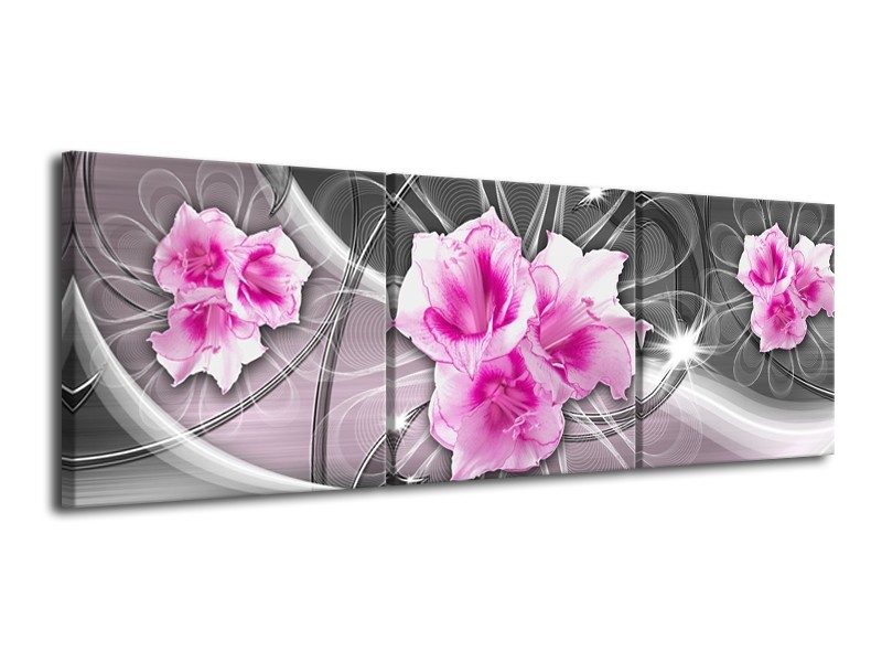 Glasschilderij Modern, Bloemen | Grijs, Roze | 120x40cm 3Luik