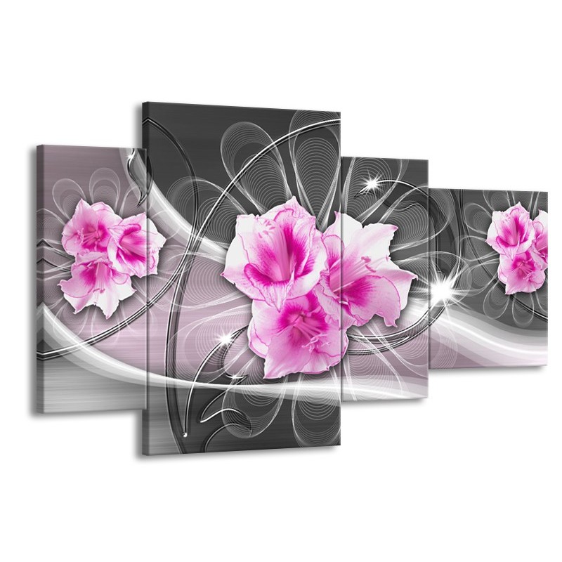 Glasschilderij Modern, Bloemen | Grijs, Roze | 120x75cm 4Luik