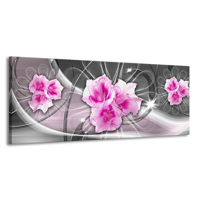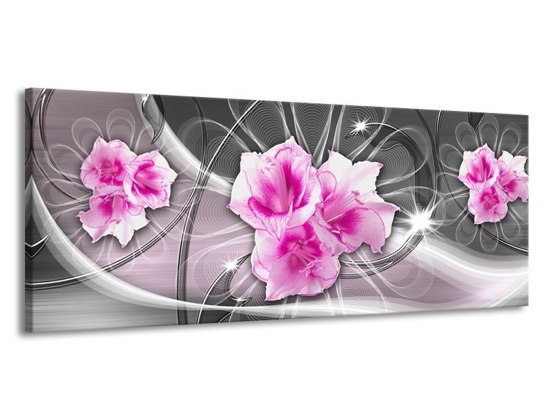 Glasschilderij Modern, Bloemen | Grijs, Roze | 145x58cm 1Luik