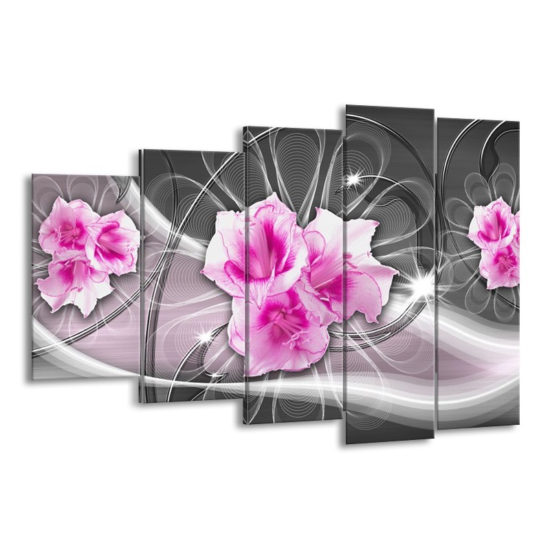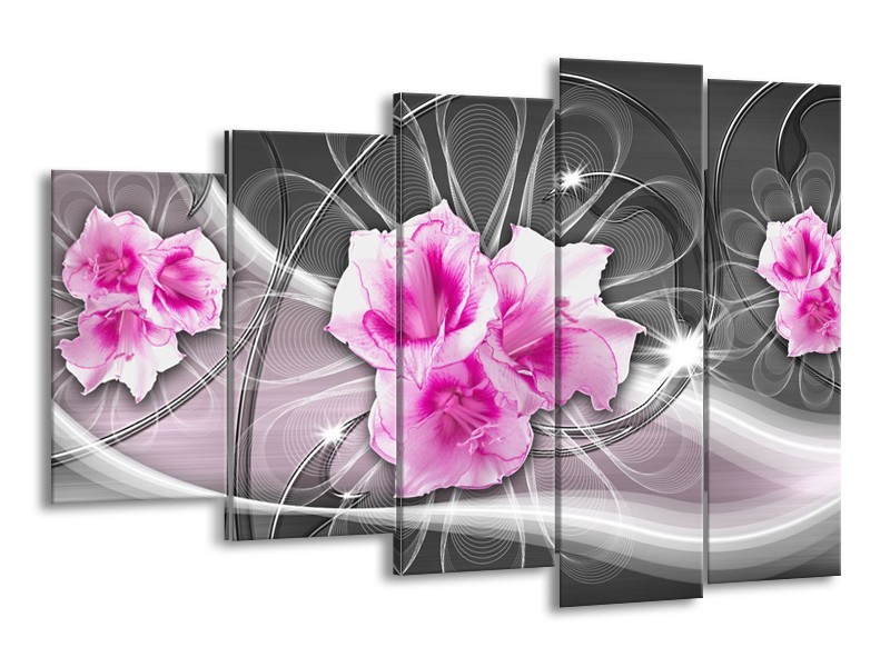 Glasschilderij Modern, Bloemen | Grijs, Roze | 150x100cm 5Luik