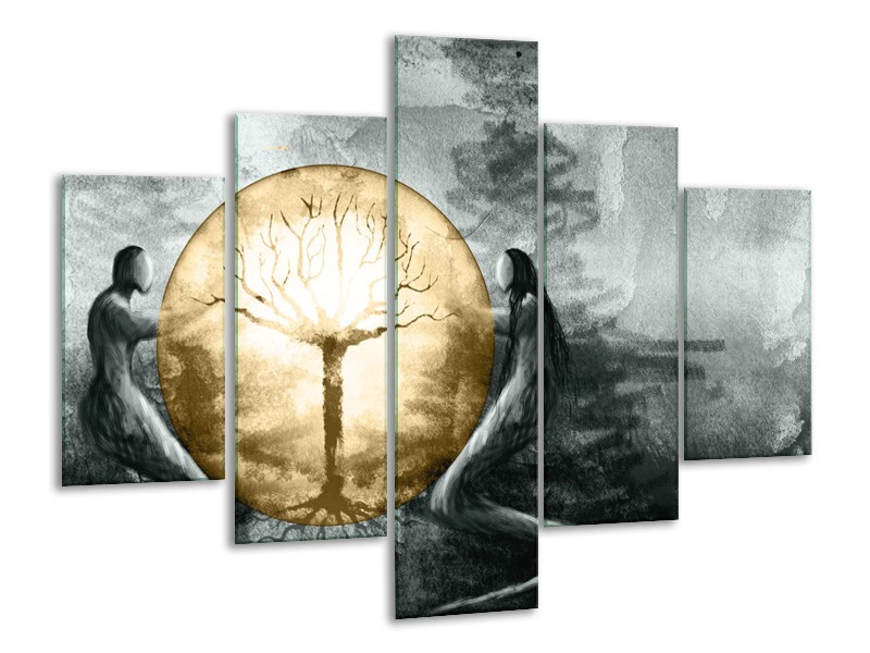 Glasschilderij Modern, Design | Grijs, Goud | 100x70cm 5Luik
