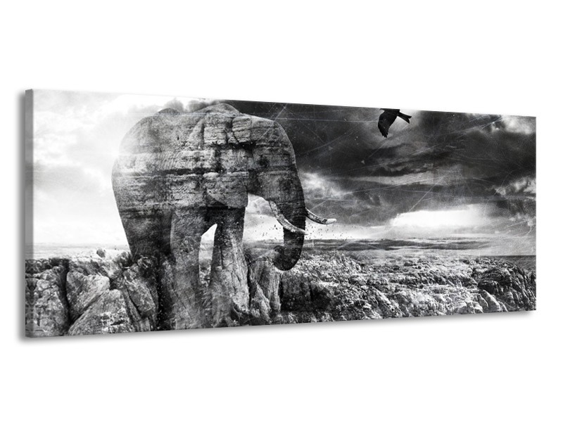 Glasschilderij Modern, Olifant | Zwart, Wit, Grijs | 145x58cm 1Luik