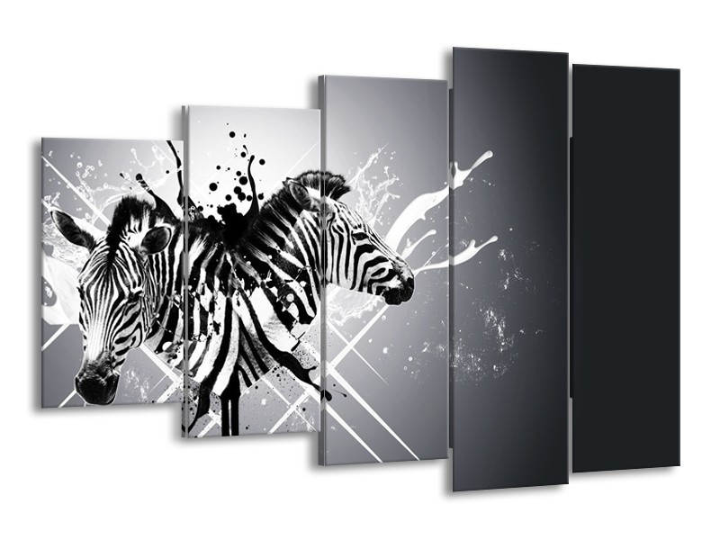 Glasschilderij Modern, Zebra | Zwart, Wit, Grijs | 150x100cm 5Luik