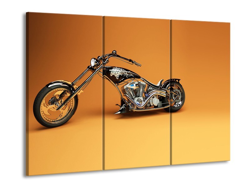 Glasschilderij Motor | Bruin, Geel, Oranje | 60x90cm 3Luik