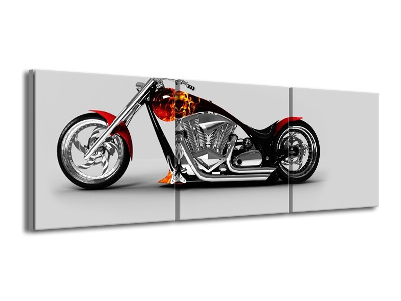 Glasschilderij Motor | Grijs, Zwart, Oranje | 150x50cm 3Luik