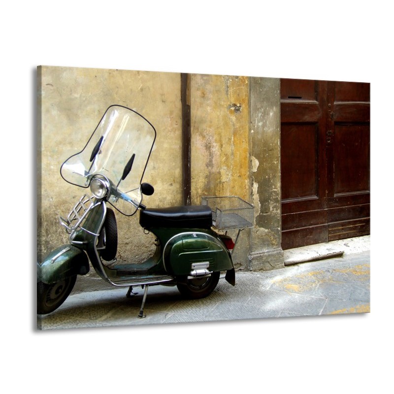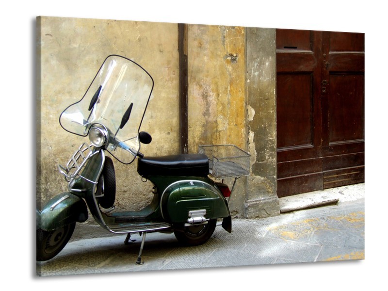 Glasschilderij Motor, Scooter | Bruin, Geel, Groen | 100x70cm 1Luik
