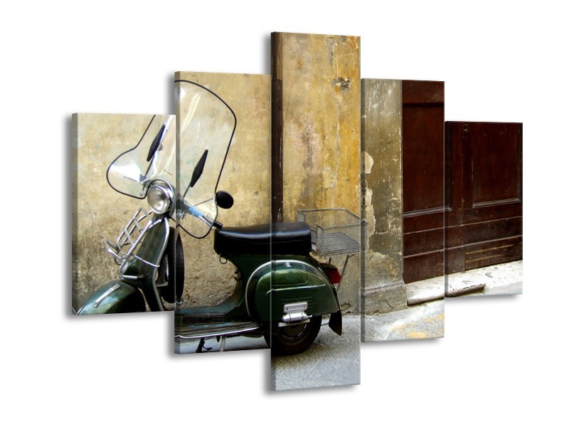 Glasschilderij Motor, Scooter | Bruin, Geel, Groen | 150x105cm 5Luik