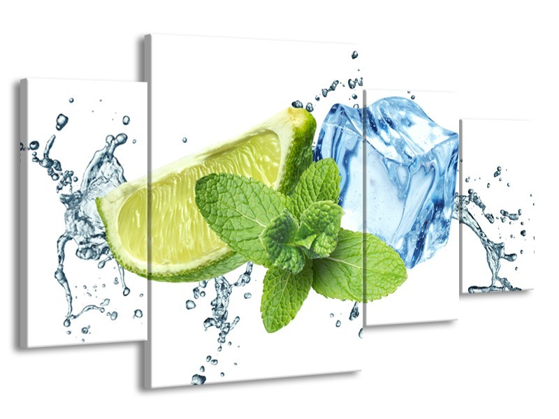 Glasschilderij Munt, Keuken | Groen, Geel, Blauw | 160x90cm 4Luik