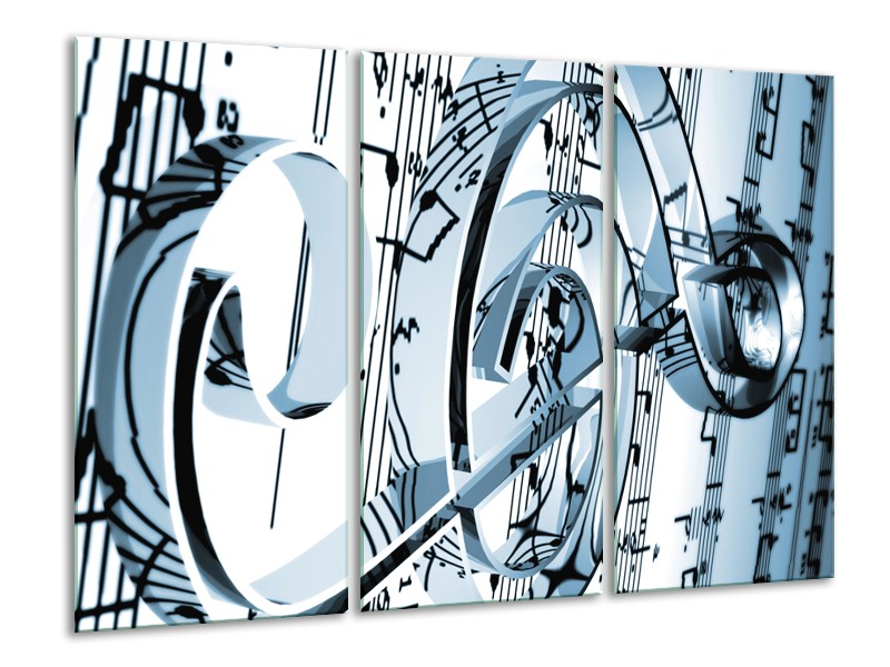 Glasschilderij Muziek | Blauw, Wit | 120x80cm 3Luik