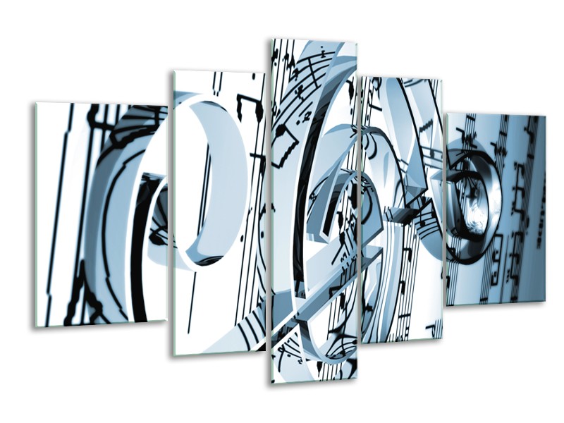Glasschilderij Muziek | Blauw, Wit | 170x100cm 5Luik