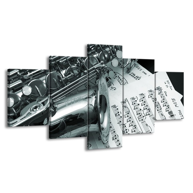 Glasschilderij Muziek | Grijs, Groen, Zilver | 150x80cm 5Luik