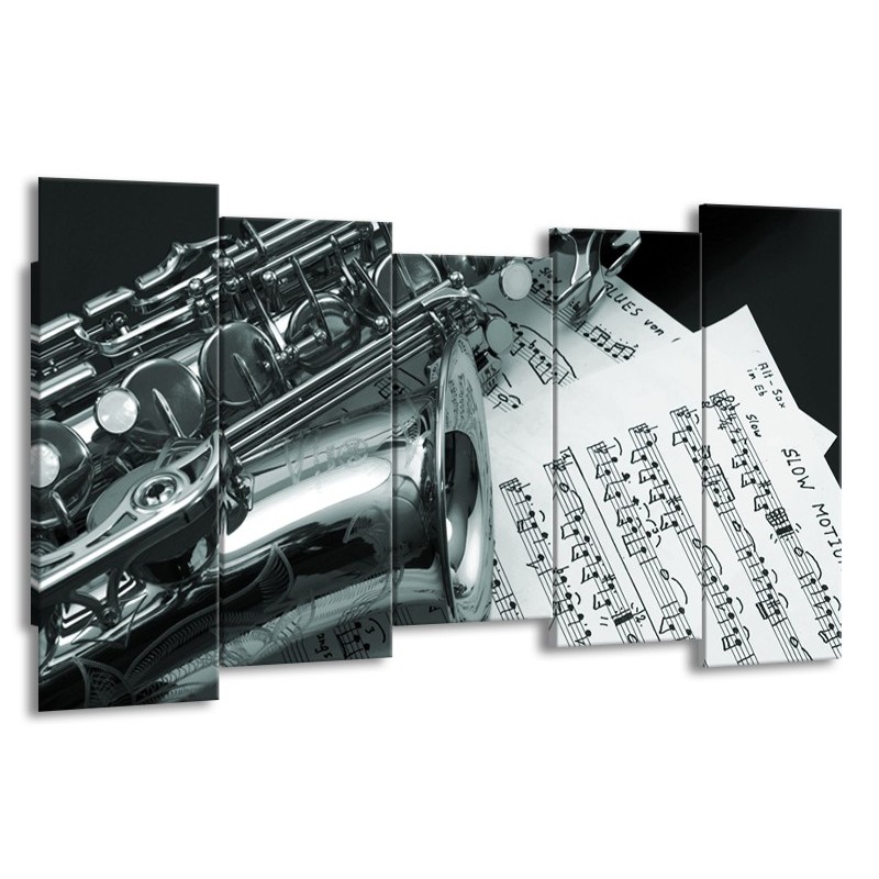 Glasschilderij Muziek | Grijs, Groen, Zilver | 150x80cm 5Luik