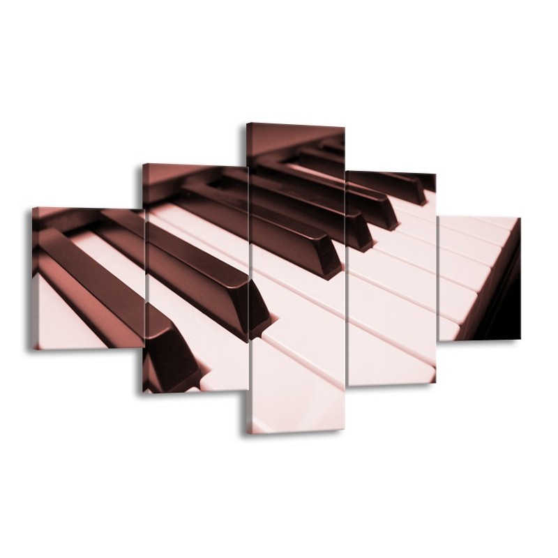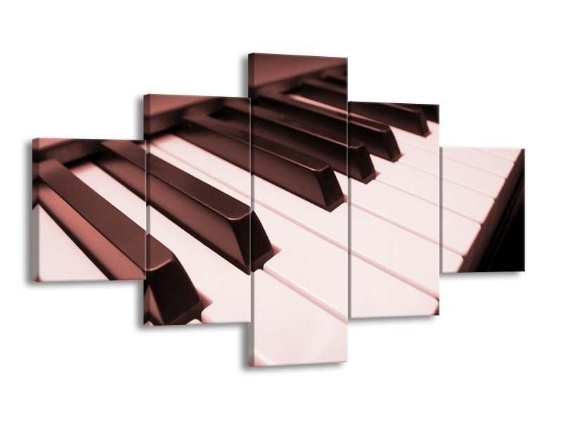 Glasschilderij Muziek, Piano | Bruin, Rood | 125x70cm 5Luik