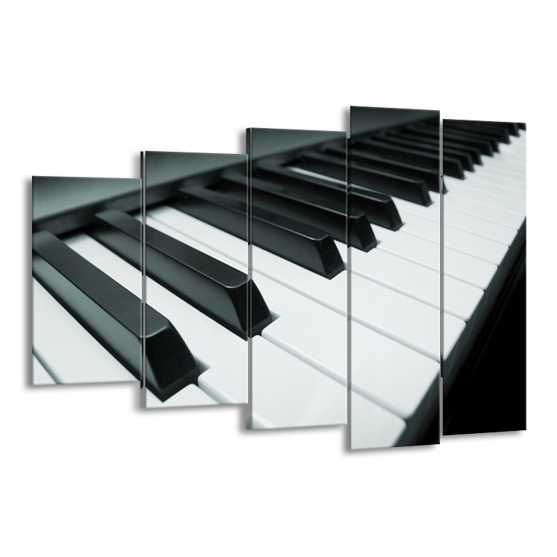 Glasschilderij Muziek, Piano | Grijs, Groen, Zwart | 150x100cm 5Luik