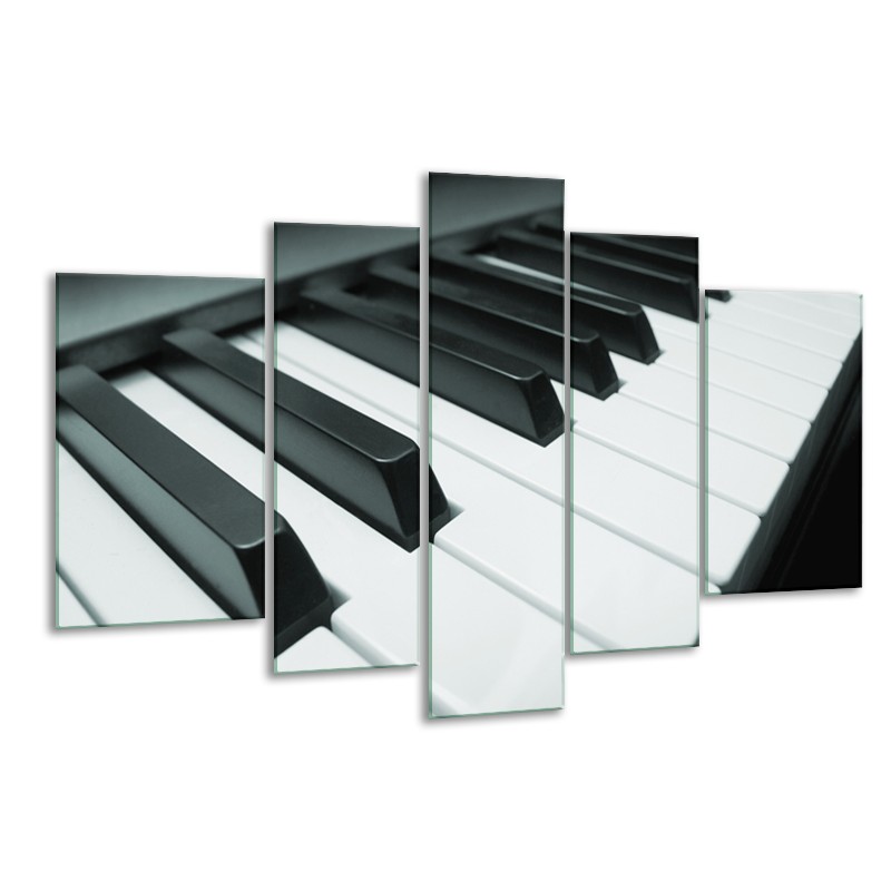 Glasschilderij Muziek, Piano | Grijs, Groen, Zwart | 170x100cm 5Luik