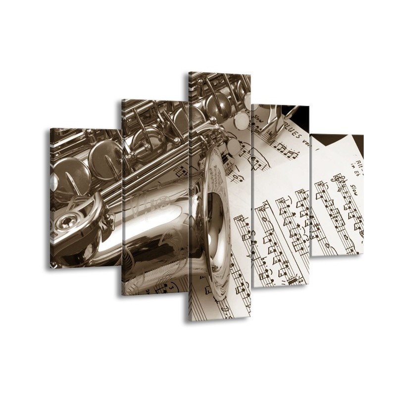 Glasschilderij Muziek | Sepia | 150x105cm 5Luik