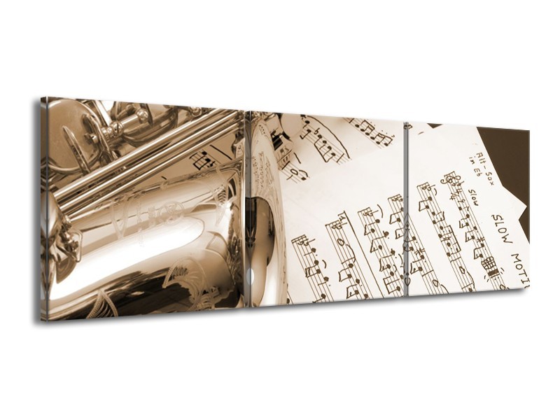 Glasschilderij Muziek | Sepia | 150x50cm 3Luik