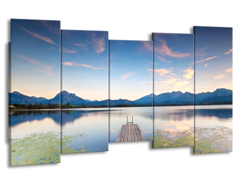 Glasschilderij Natuur, Bergen | Blauw, Grijs, Groen | 150x80cm 5Luik