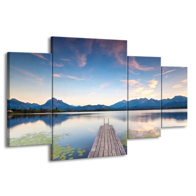 Glasschilderij Natuur, Bergen | Blauw, Grijs, Groen | 160x90cm 4Luik