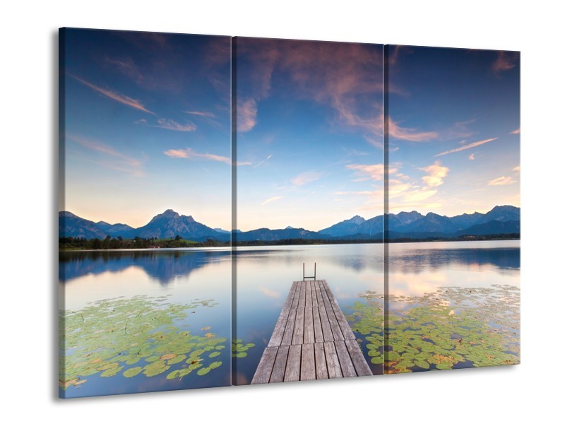 Glasschilderij Natuur, Bergen | Blauw, Grijs, Groen | 60x90cm 3Luik