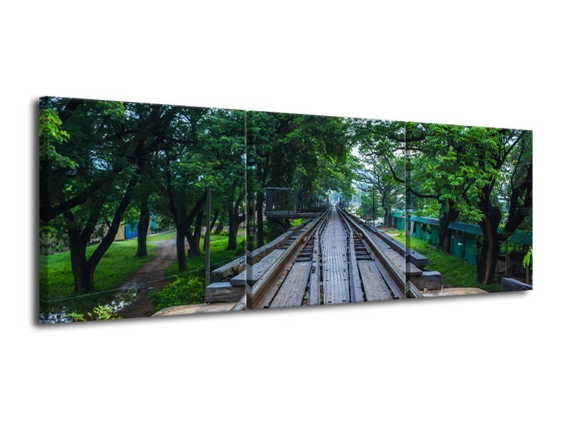 Glasschilderij Natuur, Bos | Groen, Grijs | 120x40cm 3Luik