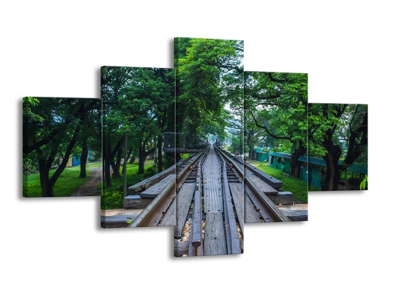 Glasschilderij Natuur, Bos | Groen, Grijs | 125x70cm 5Luik