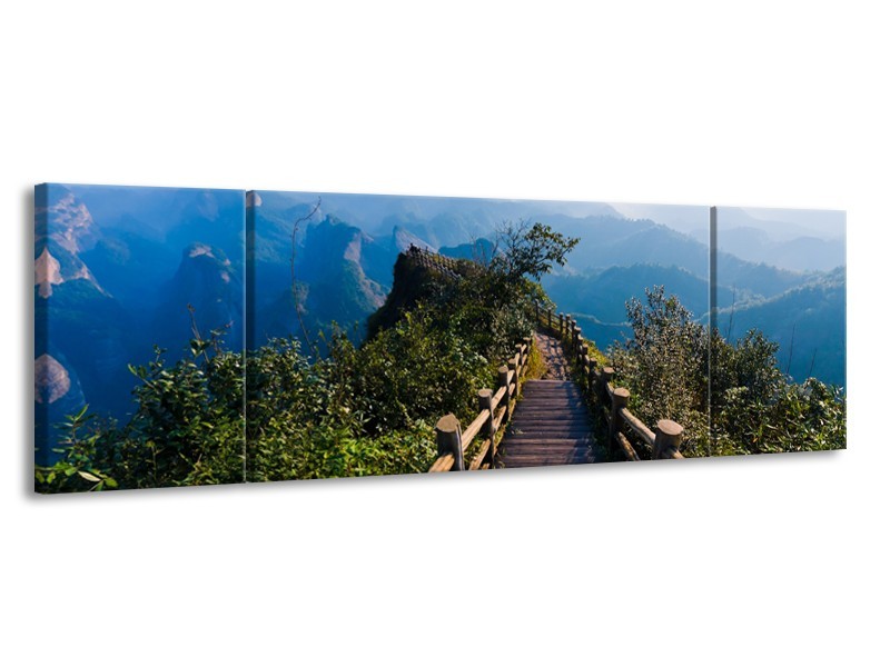 Glasschilderij Natuur, Brug | Blauw, Groen, Grijs | 170x50cm 3Luik