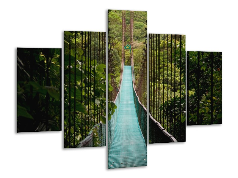 Glasschilderij Natuur, Brug | Groen, Blauw, Zwart | 100x70cm 5Luik