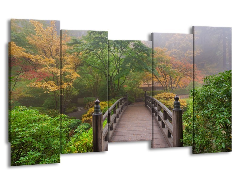 Glasschilderij Natuur, Brug | Groen, Bruin, Grijs | 150x80cm 5Luik