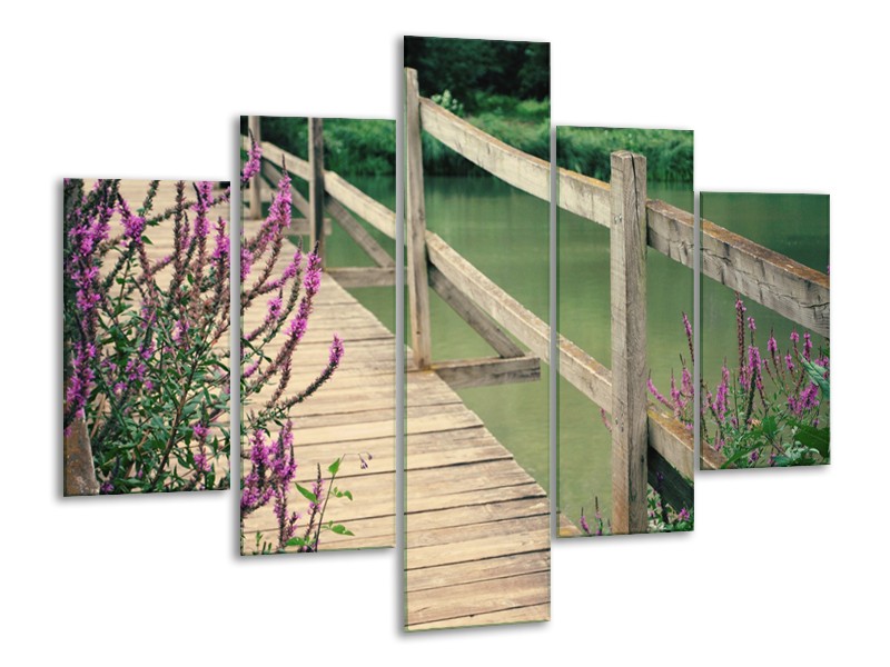 Glasschilderij Natuur, Brug | Groen, Paars, Grijs | 100x70cm 5Luik
