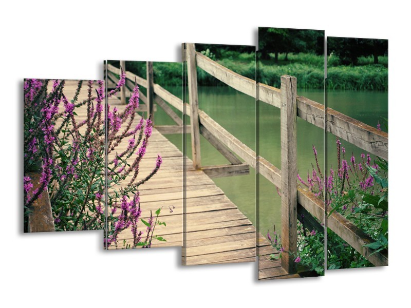 Glasschilderij Natuur, Brug | Groen, Paars, Grijs | 150x100cm 5Luik